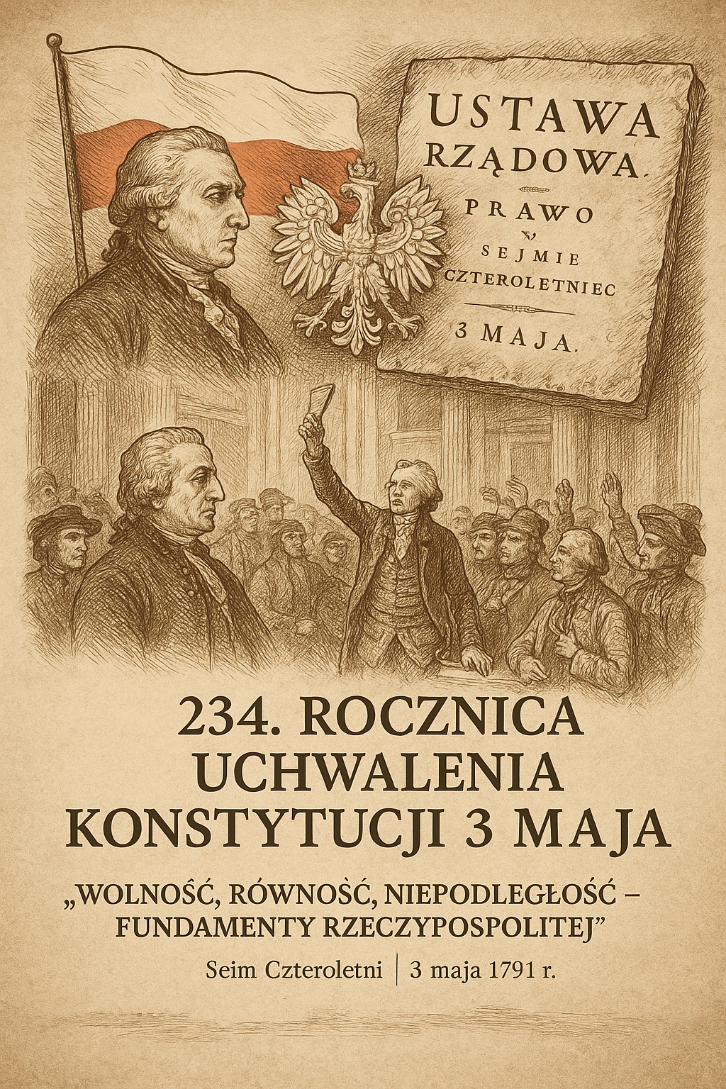 3 maja przypada rocznica uchwalenia Konstytucji 3 Maja – jednego z najważniejszych aktów prawnych w dziejach Polski i Europy. Ustanowiona w 1791 roku, była pierwszą nowoczesną konstytucją w Europie i drugą na świecie, po amerykańskiej. Dokument ten nie tylko wprowadzał przełomowe reformy ustrojowe, ale stanowił również wyraz odwagi i determinacji obywateli Rzeczypospolitej, którzy chcieli ratować państwo przed upadkiem.