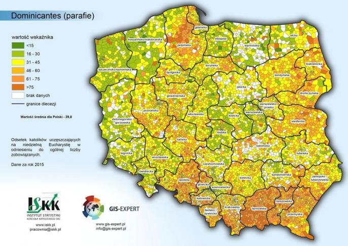 Diecezja włocławska, gdy chodzi więc o badania religijności, plasuje się poniżej średniej ogólnopolskiej, która wynosi: 36,7% dominicantes i 19% communicantes.