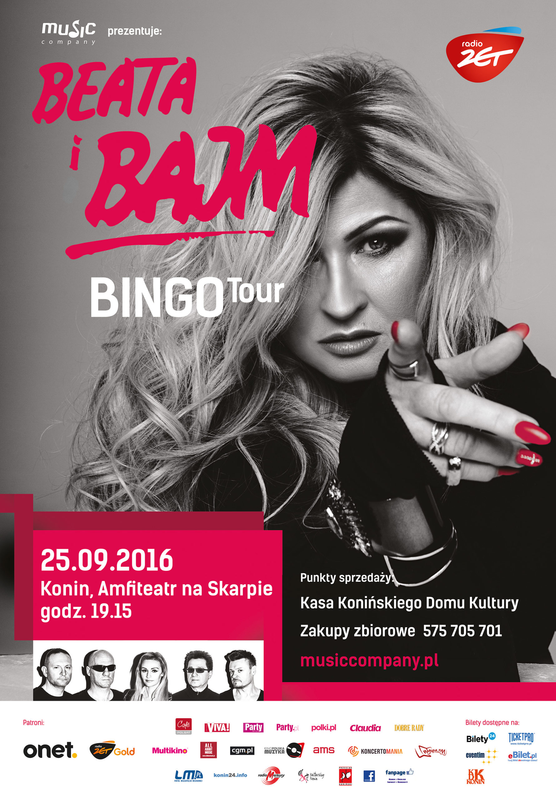 25września w Amfiteatrze w Koninie zagra Beata Kozidrak i zespół Bajm. Będzie to koncert w ramach ogólnopolskiej trasy „Bingo Tour”, podczas której zabrzmią najlepsze przeboje i najnowsze hity Beaty i Bajmu.