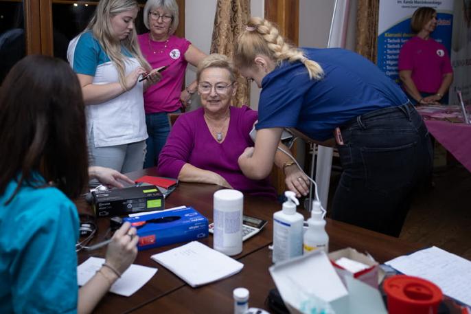 W trakcie spotkania można było wykonać badania poziomu glukozy, saturacji krwi, zmierzyć ciśnienie czy obliczyć BMI. Badania wykonywały studentki nauk o zdrowiu z Akademia Nauk Stosowanych w Koninie. Dziękujemy wszystkim naszym gościniom, które w miłej atmosferze mówiły o trudnych sprawach.