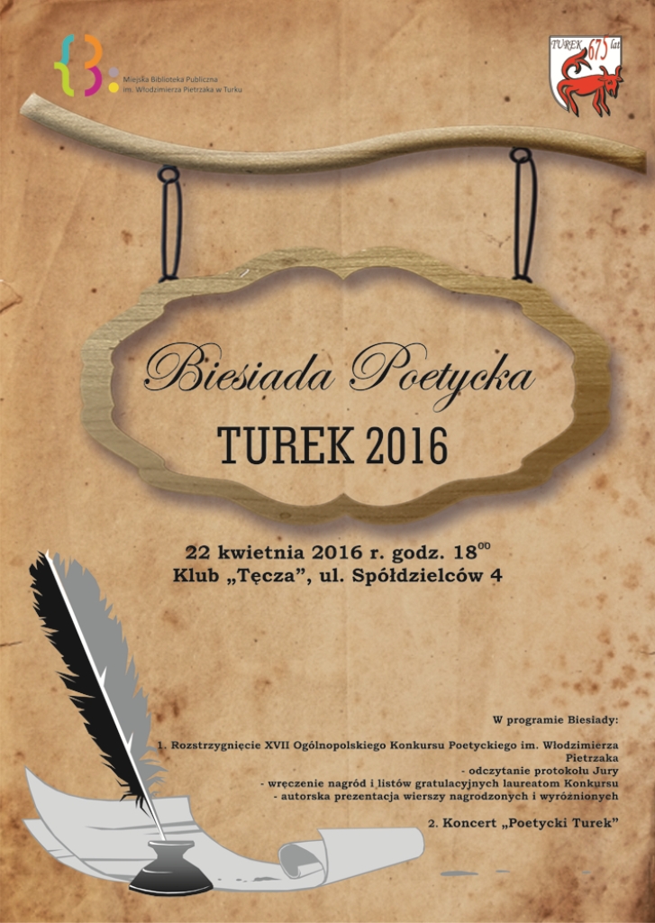 Po wręczeniu nagród serdecznie zapraszamy na koncert „Poetycki Turek” w wykonaniu uzdolnionej młodzieży z I Liceum Ogólnokształcącego w Turku.