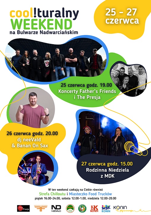 Już w piątek (25 czerwca) od godz. 16.00 do północy czynne będą food trucki ze strefą chilloutu, o godz. 19.00 na scenie przy amfiteatrze od strony CKU rozpoczną się energetyczne koncerty. Zagrają dwa konińskie zespoły: The Presja i Father’s Friends.