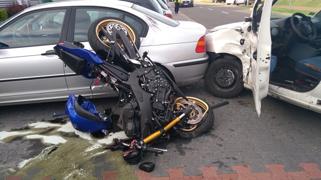 Tego samego dnia tuż po godz. 18.00 doszło do zderzenia pięciu samochodów osobowych oraz motocykla w Starym Mieście przy ul. Czereśniowej. Kierowcy motocykla oraz samochodu Fiat pomocy udzielały będące na miejscu zdarzenia Zespoły Ratownictwa Medycznego, które następnie przetransportowały poszkodowanych do szpitala.