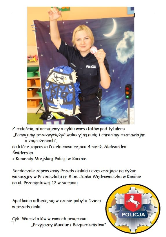 Właśnie w tych dniach sierż. Aleksandra Świderska z Wydziału Prewencji KMP w Koninie przeprowadzi warsztaty pt. " Przyjazny mundur i bezpieczeństwo".
