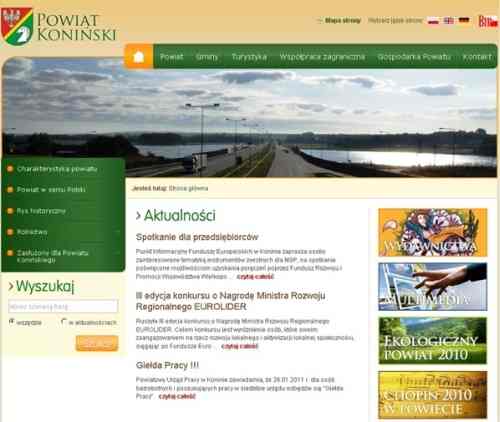 Już w lutym nastąpi odsłona nowej strony internetowej powiatu konińskiego. Odświeżona graficznie witryna wpisuje się w nową identyfikację wizualną powiatu. Oprócz zmiany wizerunku i kolorystyki, na stronie znalazły zastosowanie nowoczesne rozwiązania techniczne. W celu poprawy przejrzystości i dostępności dla internautów zmieniony został także układ strony i jej zawartość.- Strona www.powiat.konin.pl zmieniła tym samym swoje oblicze po raz piąty w historii istnienia powiatu – informuje Witold Nowak, naczelnik Wydziału Promocji i Rozwoju konińskiego Starostwa. Będzie można znaleźć na niej materiały audiowizualne o powiecie konińskim, jak również krótkie relacje filmowe z powiatowych wydarzeń kulturalnych. Najbardziej rozbudowanym działem nowej witryny będzie jednak gospodarka powiatu, z zajmującą kilkaset pozycji bazą firm powiatu konińskiego. Podmioty gospodarcze będzie też można zlokalizować na multimedialnej mapie – zapowiada Witold Nowak.