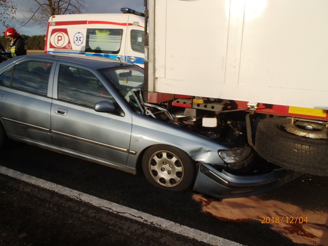 Do kolejnego tego samego dnia wypadku, doszło 4 grudnia na drodze K92 w miejscowości Słupca. Kierująca samochodem osobowym najechała na tył stojącego TiR-a. W wyniku uderzenia samochód osobowy został bardzo poważnie uszkodzony. Kierująca wyszła jednak z niego o własnych siłach. Strażacy, którzy dojechali na miejsce udzielili jej kwalifikowanej pierwszej pomocy medycznej. Następnie po przebadaniu przez zespół ratownictwa medycznego pozostała na miejscu.