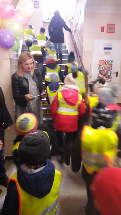 Przedszkolaki wspólnie ze starszymi kolegami zwiedzali szkołę, wykonali prace plastyczne, bawili się w suchym basenie, a także oglądali nową, pełnowymiarową salę gimnastyczną, która zrobiła na nich ogromne wrażenie. Odwiedzili również szkolną świetlicę i bibliotekę, a na koniec podarunki, które na pewno będą im przypominać o wizycie w „Jedynce”. Czas spędzony w szkole upłynął wszystkim miło i wesoło.