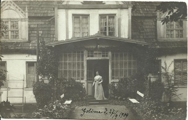 Mieszkańcy Goliny, jak i przedszkolne dzieci zorganizowały wiele akcji, by pałacyk przywrócić do świetności. Dzisiaj chcielismy pokazac dwa zdjęcia z czasów , gdy pałacyk rzeczywiście miał "lata świetności". Pierwsze zdjęcie pokazuje elewację od strony Warty. Jak dowiadujemy się z opisu, alejka prowadziła do rzeki, gdzie była przystań wioslarska. Zdjęcie drugie pokazuje dawną elewację frontową i mieszkańców dworu ( lata trzydzieste).