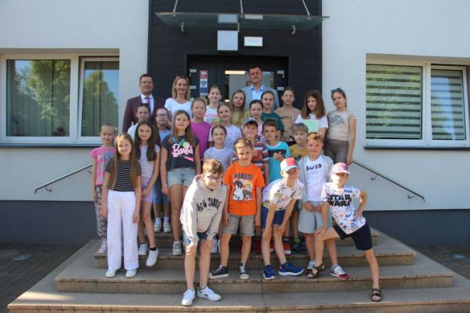 Podczas spotkania, wójtowie opowiedzieli uczniom o codziennych obowiązkach urzędu, pokazali, gdzie można wyrobić dowód osobisty oraz gdzie odbywają się śluby. Następnie wspólnie odwiedzili salę konferencyjną biblioteki, w której odbywają się sesje rady gminy oraz półkolonie.