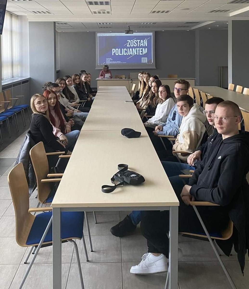 W dniu 20 marca 2024 roku w siedzibie Komendy Miejskiej Policji w Koninie odbyło się spotkanie funkcjonariuszy z młodzieżą zorganizowane w ramach 21. edycji "Dnia Przedsiębiorczości" przez Zespół Szkół Górniczo-Energetycznych im. Stanisława Staszica w Koninie.