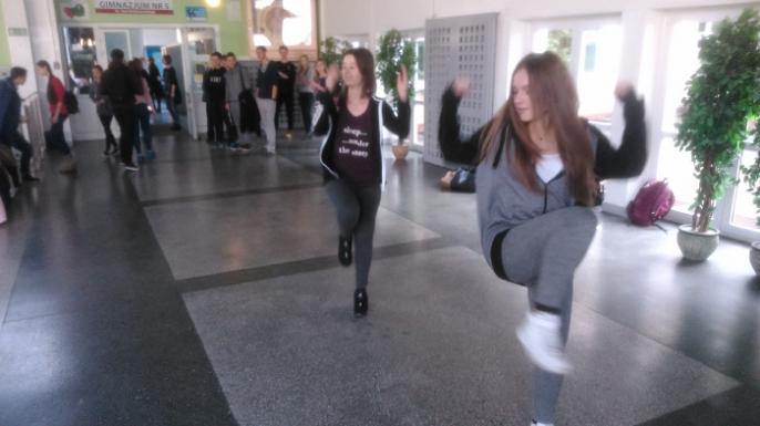 To za sprawą 'Dnia dresa’, czyli akcji organizowanej raz w miesiącu przez szkolny samorząd. Nie chodzi tu jednak tylko i wyłącznie o przebranie w słynny „sportowy mundurek”. Poprzednio od wywoływania do odpowiedzi zwalniał uczniów strój black&white, a – jak zapewniają – na takie akcje mają jeszcze mnóstwo pomysłów. Jak widać ten dzisiejszy się spodobał. Na korytarzach niewielu było uczniów ubranych w inne – aniżeli sportowe – stroje. Na dużej przerwie chętni „dresiarze” odtańczyli zumbę na szkolnym korytarzu.