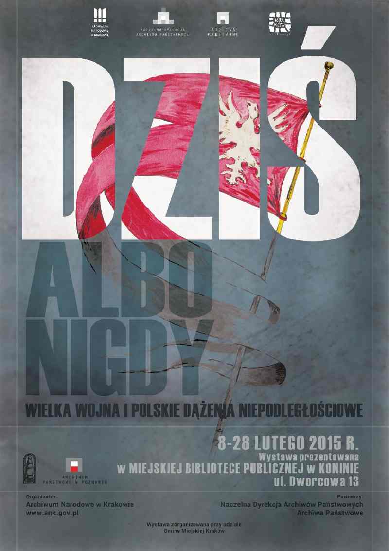 Z okazji setnej rocznicy wybuchu tej wojny powstała wystawa na którą zapraszają koninian Archiwum Państwowe w Poznaniu wraz z Miejską Biblioteką Publiczną w Koninie. Otwarcie ekspozycji „Dziś albo nigdy. Wielka wojna i polskie dążenia niepodległościowe” odbędzie się 8 lutego 2015 r. o godz. 11.30 w Miejskiej Bibliotece Publicznej w Koninie przy ul. Dworcowej 13.