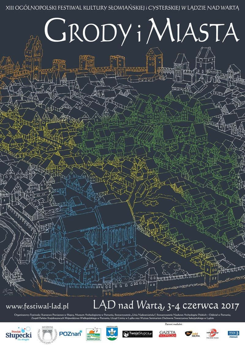 Grody i miasta będą tematem XIII edycji Ogólnopolskiego Festiwalu Kultury Słowiańskiej i Cysterskiej w Lądzie. Festiwal Opowie teraz o dawnych ośrodkach życia społecznego, o ich niezwykłych karierach i upadkach, o roli jaką odegrały w naszych dziejach. Przywołany zostanie obraz, wspaniałość fortyfikacji i monumentalnych budowli, pejzaż kramów, warsztatów, domów i ulic, gwar kupców, rzemieślników oraz ciekawskiej gawiedzi, bicie kościelnych dzwonów i śpiew pobożnych mnichów, popisy kuglarzy i ludowych grajków, dymy palenisk i szczęk broni, słowem kolory, dźwięki, zapachy i smaki średniowiecza. Zapraszamy na wykłady, wystawy, prezentacje i warsztaty dla dzieci, na dyskusje o grodach i miastach, które będą toczone wśród słowiańskich namiotów i w klasztornych krużgankach. Tradycyjnie nie zabraknie pokazów, inscenizacji i koncertów. Przyjedźcie do Lądu! Tam bowiem będzie centrum naszego życia i miejsce opowieści o epoce, w której powstały zręby współczesnej Polski i Europy.