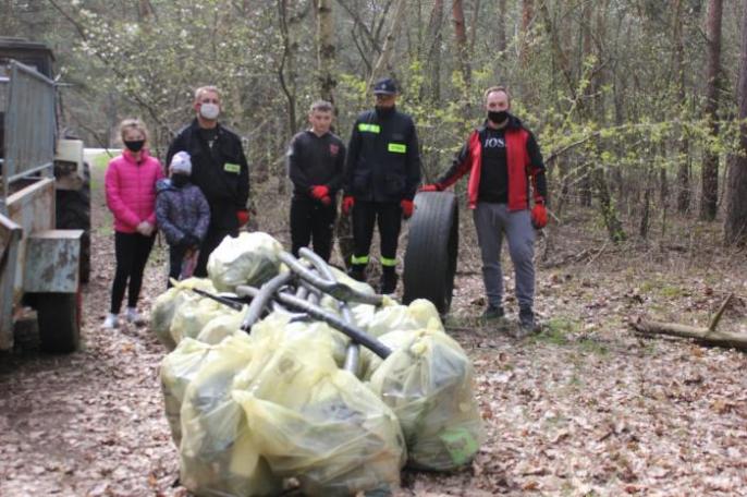 Tylko godzina wystarczyła, żeby uzbierać dwadzieścia worków śmieci w lasku przy Niepublicznej Szkole Podstawowej w Głodnie. Akcję zorganizowali druhowie z miejscowej jednostki Ochotniczej Straży Pożarnej.