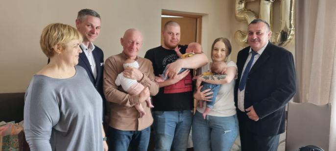 Zosia, Antek i Wojtuś stali się pierwszymi trojaczkami w historii gminy Kleczew. Mariusz Musiałowski, Burmistrz Gminy Kleczew, wraz z zastępczynią Anną Skórzewską oraz sołtysem Złotkowa, Pawłem Jakubowskim, odwiedzili najmłodszych.