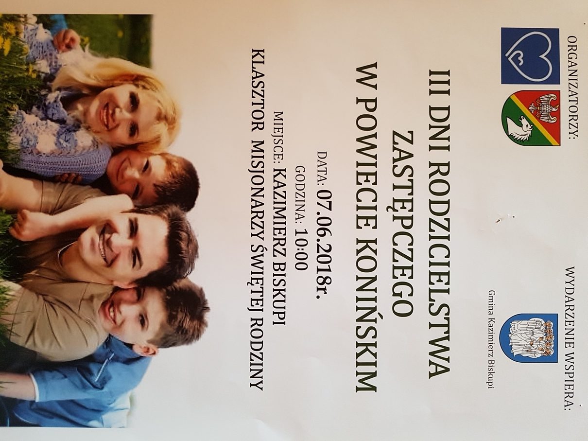 III Dni Rodzicielstwa Zastępczego tradycyjnie odbędą w Kazimierzu Biskupim. Rodziny zastępcze z powiatu konińskiego spotkają się 7 czerwca o godzinie 10.00 w kazimierskim Amfiteatrze, gdzie czas umilą im występy artystyczne oraz spotkanie z druhami miejscowej jednostki OSP. Dwie godziny później (o 12.00) w Klasztorze Misjonarzy Świętej Rodziny wezmą udział w rodzinnej modlitwie, a od 12.15 do 14.00 bawić się będą na przyklasztornym placu podczas festynu rekreacyjno-sportowego. Wszyscy uczestnicy imprezy ugoszczeni zostaną kiełbaską z grilla, słodkościami oraz napojami.