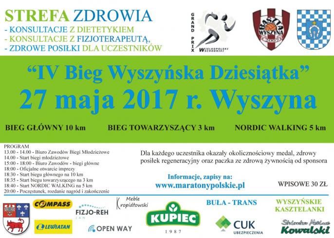 IV Bieg Wyszyńska Dziesiątka, odbędzie się na stadionie, w najbliższą sobotę 27 maja 2017r., w Wyszynie gm. Władysławów.