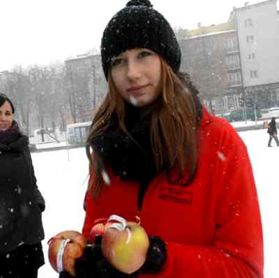 Ja równiez dostałam dzisiaj jabłuszko w przejsciu na Zatorze , bylo mi bardzo miło mimo tego padajacego sniegu i aury iscie bozonarodzeniowej poczułam sie lepiej a usmiech na gębie miałam jeszcze przez 200 metrów drogi.dziękuje bardzo!