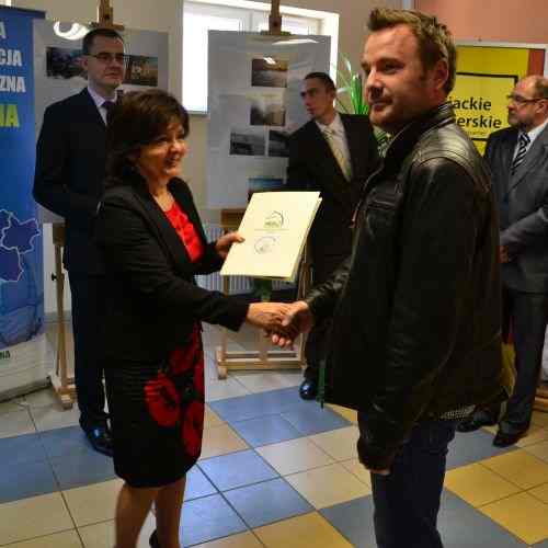 (na zdjęciu: starosta koniński Małgorzata Waszak i zwycięzca konkursu Robert Łechtański)