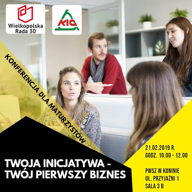 KIG zaprasza na jutrzejszą konferencję Konińskiej Izby Gospodarczej „Twoja inicjatywa – Twój pierwszy biznes”, którą organizujemy dla tegorocznych maturzystów w Państwowej Wyższej Szkole Zawodowej w Koninie ul. Przyjaźni 1 sala 3B w dniu 21.02.2019 r. w godz. 10.00 – 12.00