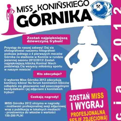 Przez 4 pierwsze mecze ligowe Górnika w rozpoczynającym się dziś sezonie, przedstawiciele kibiców będą fotografować chętne do wzięcia udziału w konkursie panie. O wyborze miss zadecyduje głosowanie, które zostanie przeprowadzone na forum internetowym konińskich kibiców. Trzy najpiękniejsze zdaniem fanów kibicki, otrzymają nagrody, a wybrana miss Górnika weźmie też udział w sesji zdjęciowej wykonanej przez zawodowego fotografa.