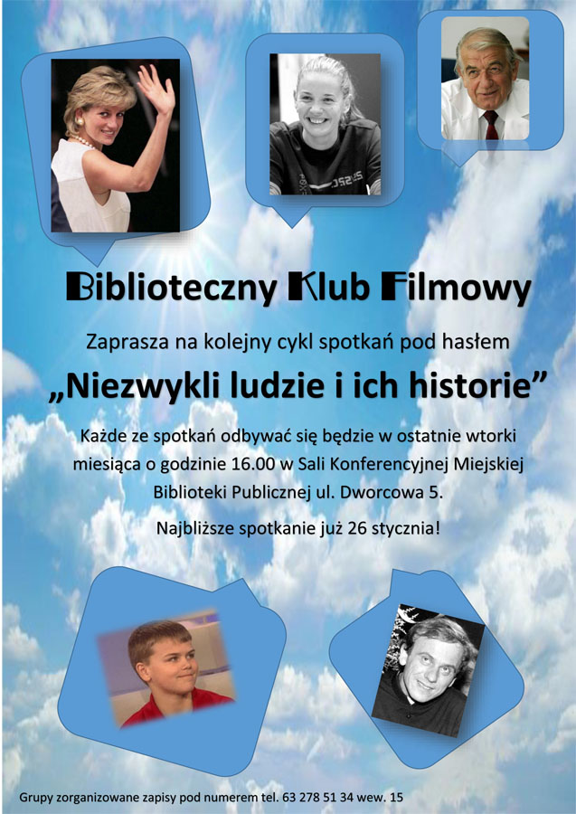 W najbliższy wtorek, tj. 26 stycznia 2016 r., rusza kolejna edycja Bibliotecznego Klubu Filmowego. Tegorocznym spotkaniom towarzyszyć będzie hasło „Niezwykli ludzie i ich historie"