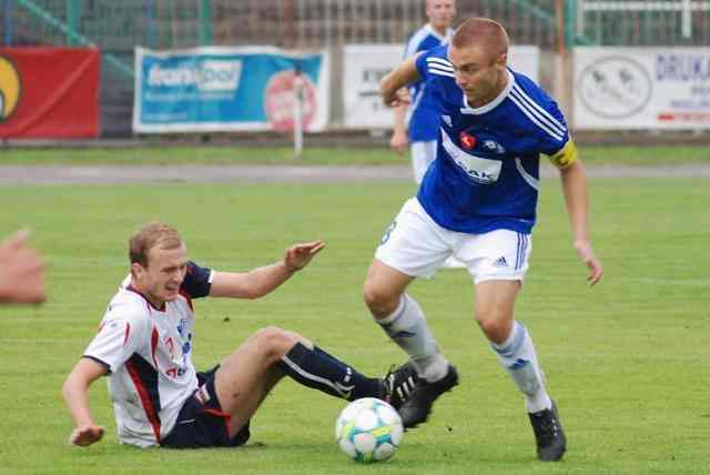 Do spotkania biało-niebiescy przystąpili ze sporymi zmianami w składzie. W linii obrony zagrał Piotr Bartczak i Dawid Śnieg. Na bramce zadebiutował Łukasz Jaskólski. Pierwszy gol padł po prostopadłym podaniu do Damiana Ludwiczaka.