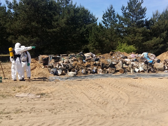 31 maja 2017r. do Straży Pożarnej w Koninie wypłynęło zgłoszenie od Wojewódzkiego Inspektora Ochrony Środowiska w Poznaniu, że będzie potrzebna pomoc strażaków przy zabezpieczaniu pobierania próbek przez WIOŚ. Po przybyciu na miejsce zdarzenia stwierdzono, że w hałdach piasku znajduje się nierozpoznana ilość różnych zbiorników z substancjami chemicznymi. Cześć pojemników była oznakowana. Niektóre wystawały z ziemi. W wyniku rozpoznania stwierdzono również niewielkie rozlewiska substancji z uszkodzonych beczek.