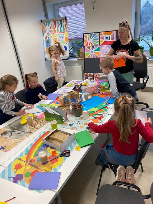 – Pomysł na zorganizowanie tej świetlicy pojawił się tak naprawdę dzięki 6-letniemu Iwankowi. Wieźliśmy go razem z 8-letnim bratem i babcią z dworca do hostelu, a on po 30-godzinnej, ciężkiej podróży z Ukrainy wyglądając przez okno auta pytał: czy tutaj też będą bombardować?… Długo słyszałam w głowie to pytanie Iwanka. Bardzo było potrzebne takie miejsce, gdzie dzieci zajmą się czymś dobrym, zjedzą ciepłego pączka, pobędą razem i po prostu zapomną o tym całym koszmarze. Otrzymaliśmy wsparcie od Przyjaciół z Fundacji ING Dzieciom oraz z firmy Gränges, za co nigdy nie przestaniemy dziękować! No i ruszyła ta sympatyczna kawiarnia, potocznie nazywana przez nas świetlicą. Dzieci są tutaj zaopiekowane, mają swój kolorowy świat, uczą się wielu pięknych rzeczy, są tutaj bezpieczne, radosne i szczęśliwe, a mamy w tym czasie mają czas dla siebie i o to właśnie nam chodziło, o taką normalność – mówi Zuzanna Janaszek-Maciaszek, prezes Fundacji PODAJ DALEJ.