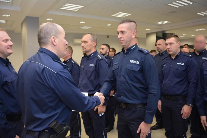 Na początku komendant wręczył medale pamiątkowe z okazji 100. Rocznicy Powołania Policji Państwowej przyznane przez Komendanta Wojewódzkiego Policji w Poznaniu. Otrzymali je podkom. Damian Kasprzak, asp. szt. Dariusz Tomczak oraz asp. szt. Mariusz Pigulski. Zaraz po nich akt mianowania na stanowisko Kierownika Ogniwa III Wydziału Patrolowo – Interwencyjnego otrzymał mł. asp. Marcin Starzyński.