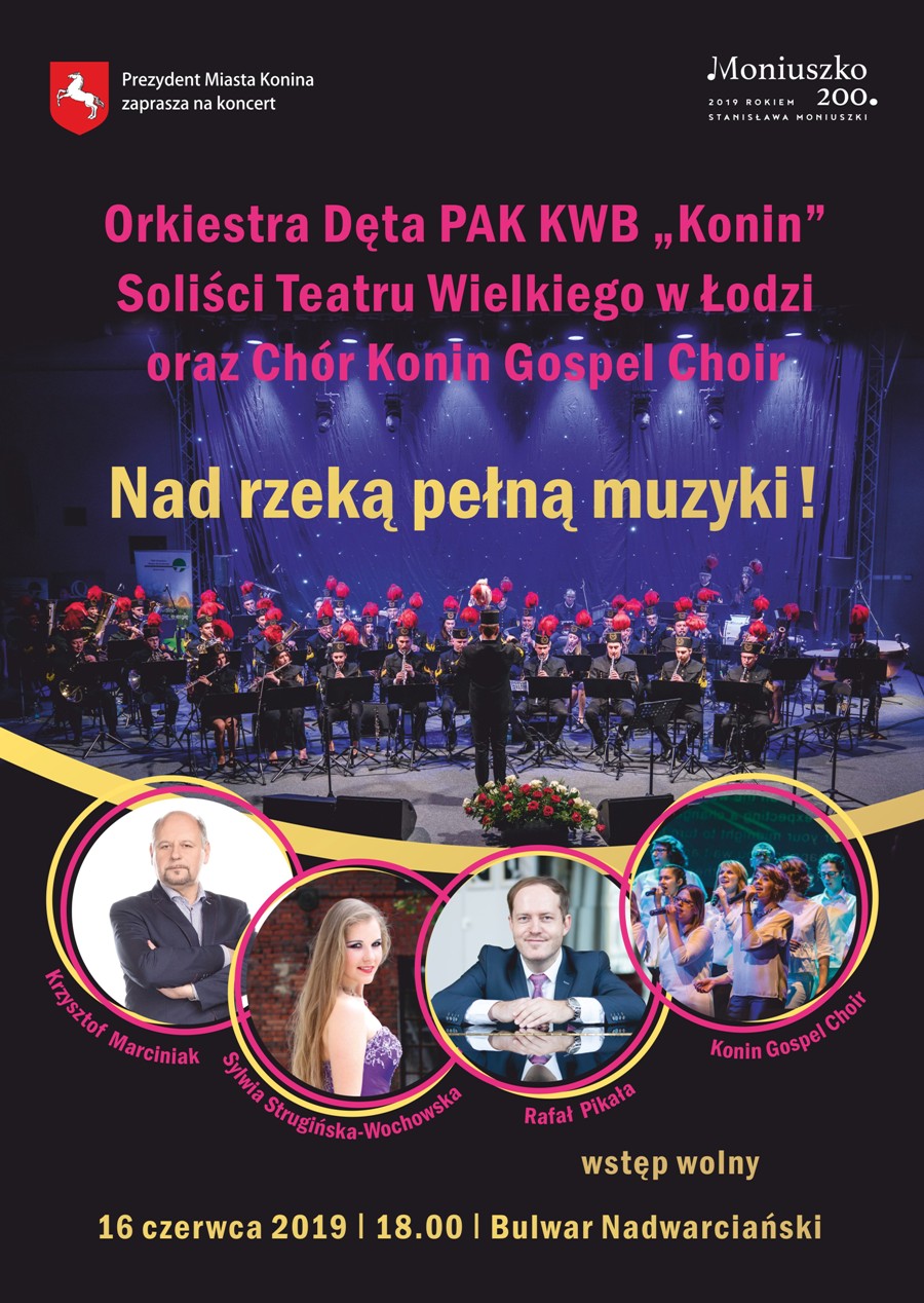 Prezydent Miasta Konina zaprasza 16 czerwca 2019 roku, o godzinie 18.00 na wyjątkowy koncert, zatytułowany „Nad rzeką pełną muzyki”.