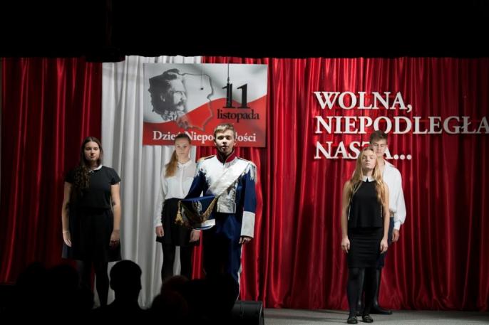 Następnym punktem programu był montaż słowno – muzyczny „ Wolna, niepodległa, nasza” przygotowany przez gimnazjalistów z Goliny pod opieką pań: Aldony Olesiak, Agnieszki Piekarskiej, Justyny Sieczkowskiej oraz pana Jana Kasprzaka. O niezwykle wysokim poziomie występu świadczą łzy wzruszenia w oczach gości i niezwykle długie owacje na stojąco.