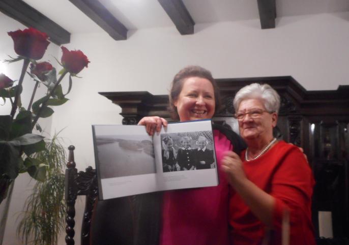 Wyraźnie zadowolona (ma powody) Izabela Bobrowska z jedną z dziewczynek, którą 60 lat temu sfotografował Ryszard Kapuściński przed gmachem SP 4 w Koninie. Ta dziewczynka to Maria Jakóbczyk (obecnie Laskowska).