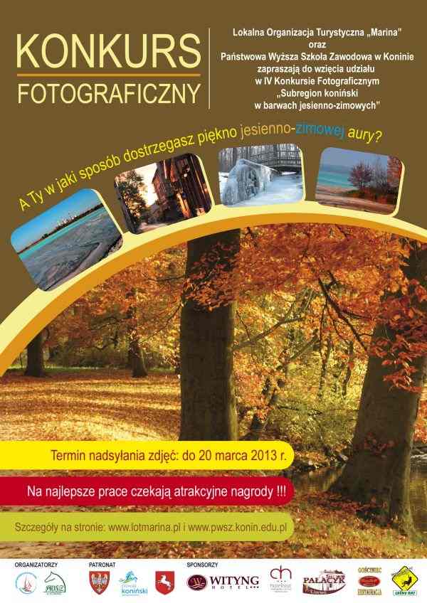 Ruszyła IV edycja Konkursu Fotograficznego „Subregion koniński w barwach jesienno-zimowych”.Zdjęcia ukazujące charakterystyczne miejsca w mieście i okolicach można nadsyłać lub dostarczać osobiście do organizatora konkursu – Lokalnej Organizacji Turystycznej MARINA – do 20 marca 2013 r.