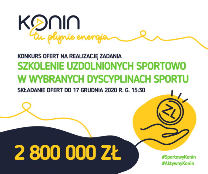 Prezydent Miasta Konina ogłosił konkurs na realizację zadania publicznego w 2021r. w zakresie szkolenia uzdolnionych sportowo w wybranych dyscyplinach sportu.