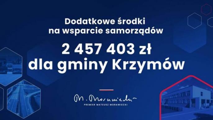 Prawie dwa i pół miliona złotych „dodatkowych środków na wsparcie samorządów” otrzymała gmina Krzymów od rządu. To rekompensata za utraconą przez samorządy część wpływów z podatku CIT. Ponadto z urzędu marszałkowskiego do gminnej kasy wpłynie ponad sto siedemdziesiąt tysięcy na budowę drogi w Depauli.