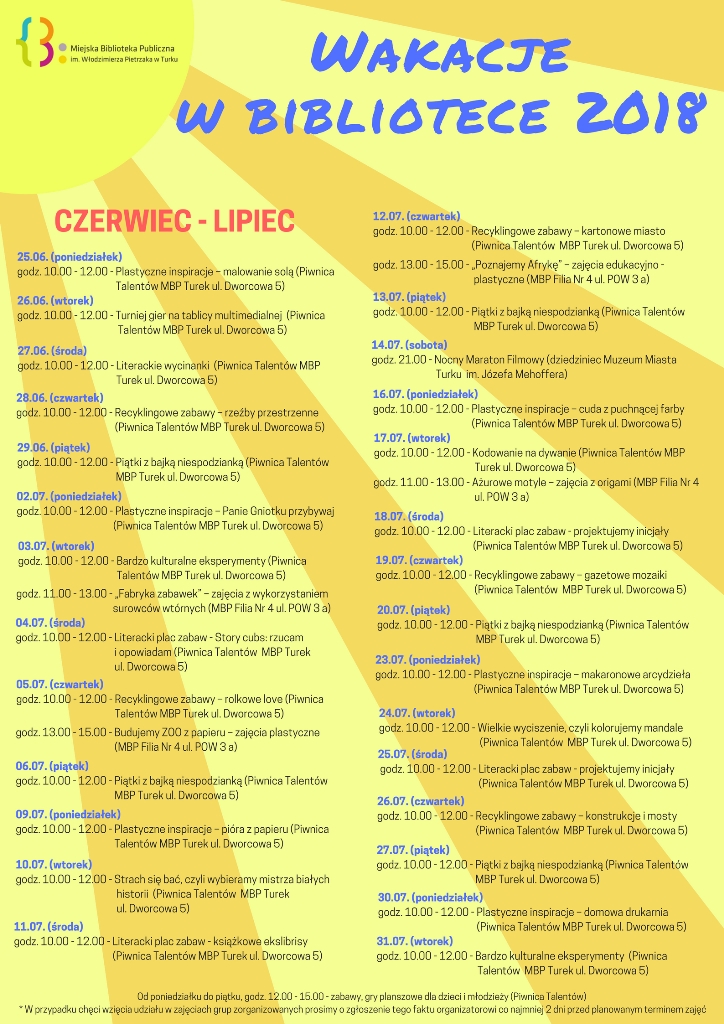 Prezentujemy program wakacji w mieście, czyli atrakcji, jakie oferują dzieciakom miejsce jednostki organizacyjne oraz organizacje pozarządowe. Zachęcamy do udziału i dobrej zabawy.