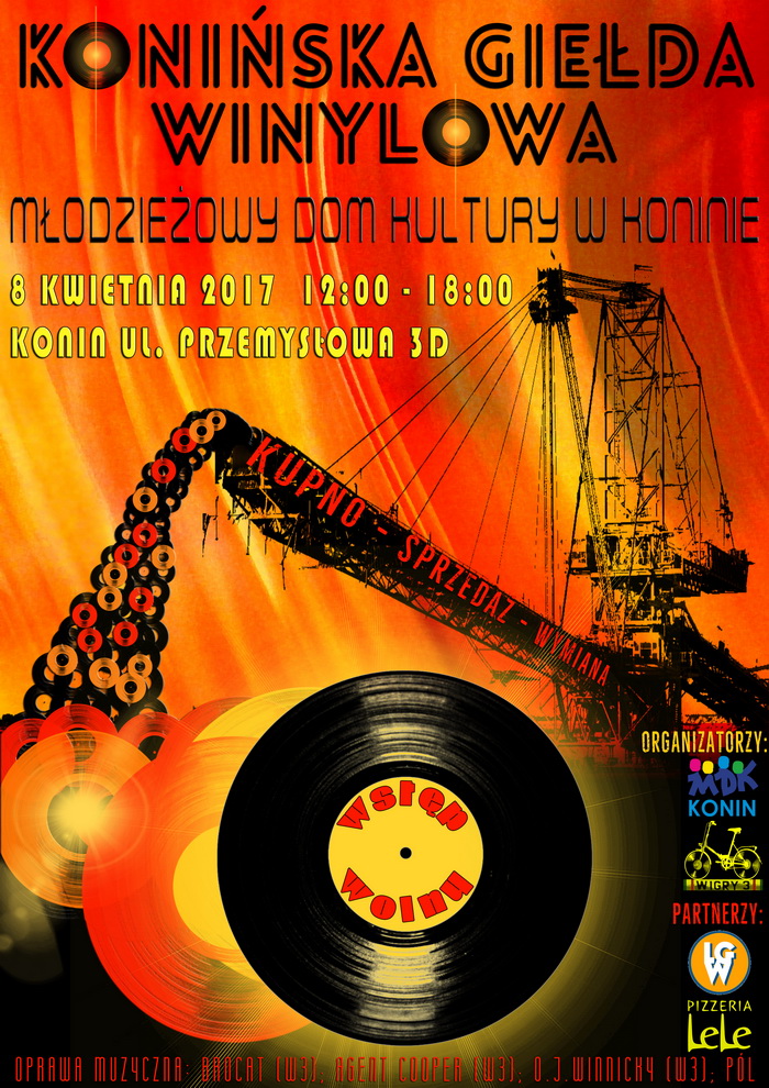 Podczas imprezy zapewniony będzie szeroki wachlarz gatunkowy oraz wydania kolekcjonerskie i aktualnie tłoczone winyle przygotowane przez naszych wystawców! Będzie można również skorzystać z punktów odsłuchowych oraz kupić, sprzedać i wymienić winyle. Na imprezę MDK zaprasza wszystkich miłośników oraz tych, którzy chcą zacząć swoją przygodę z czarnymi krążkami. Po giełdzie w klubie Sin City, mieszczącym się w MDK zapraszamy na after party, zagrają: Brocat (W3), Agent Cooper (W3), O.J. Winnicky (W3), Pól.