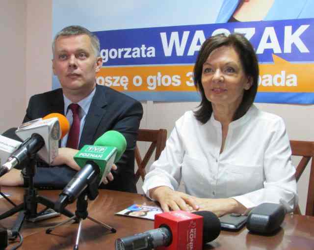 Tomasz Siemoniak – Minister Obrony Narodowej – poparł Małgorzatę Waszak. To jeden z najlepszych starostów, będzie równie dobrym prezydentem, mówił na konferencji prasowej kandydatki PO, wicepremier, minister obrony narodowej.Mam nadzieję, że Marek Waszkowiak pójdzie na wybory, nie popełni błędu i zagłosuje na mnie – mówi Małgorzata Waszak, komentując decyzję byłego wiceprezydenta, który stwierdził, że Józefa Nowickiego nie poprze.