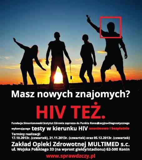 „Masz nowych znajomych? HIV też” – to hasło ogólnopolskiej kampanii społecznej organizowanej przez Simontonowski Instytut Zdrowia. W jej ramach na ulicach miast pojawią się bilbordy i plakaty. Dodatkowo, będzie można za darmo skorzystać z badania na obecność wirusa w organizmie.