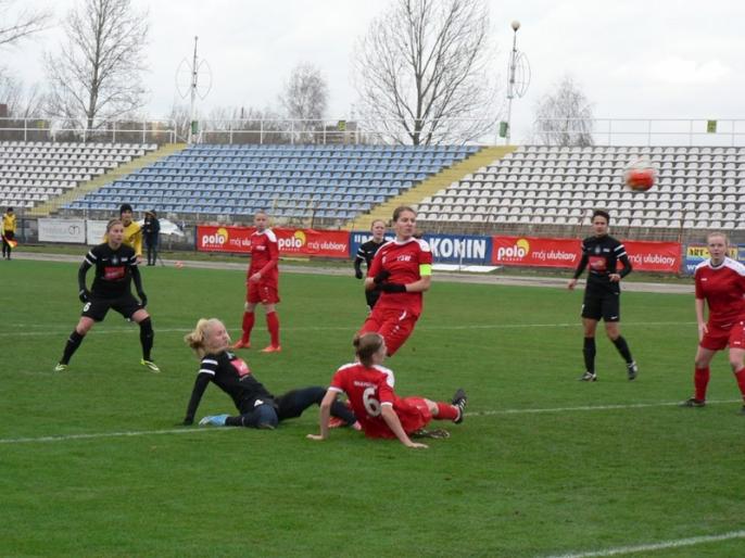 Aleksandry Sikory i Natalii Chudzik.Podopieczne Romana Jaszczaka rozpoczęły strzelanie w Koninie w 12. minucie pojedynku, kiedy to zamieszanie w polu karnym wykorzystała Anna Gawrońska, uderzając z bliskiej odległości do bramki Edyty Kanclerz. Dużą rolę przy tym trafieniu odegrał… wiatr, który wręcz zatrzymał piłkę lecącą w pole karne, dzięki czemu kapitan Medyka zdołała trafić do siatki.