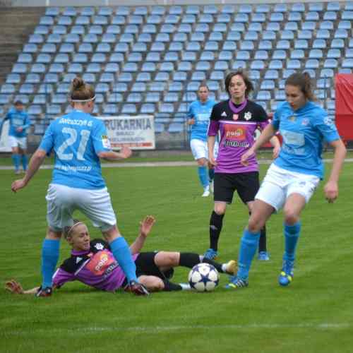 Druga połowę lepiej rozpoczęły przyjezdne. Po podaniu z niemalże środka boiska oko w oko z Anną Szymańską znalazła się Gabriela Daleszczyk. Bydgoszczanka nie zmarnowała swej szansy zdobywając honorowe trafienie dla KKP. W 77. min. Hanna Olszańska sfaulowała w obrębie własnego pola karnego Aleksandrę Sikorę. Sędzia wskazała na wapno, a „jedenastkę” na bramkę zamieniła Anna Gawrońska.