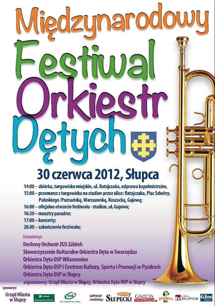 W festiwalu wezmą udział m. in. Orkiestra Dęta OSP i Centrum Kultury, Orkiestra Sportu i Promocji z Pyzdr i Stowarzyszenie Kulturalne Orkiestra Dęta ze Swarzędza. Organizatorami festiwalu jest słupecki Urząd Miasta i Orkiestra Dęta OSP w Słupcy. Początek o godzinie 14:00 w sobotę 30 czerwca przy targowisku miejskim w Słupcy.