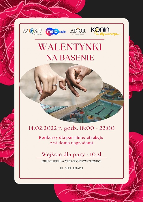 Miejski Ośrodek Sportu i Rekreacji w Koninie, MeloRadio, firma ADOR oraz Miasto Konin serdecznie zapraszają na "Walentynki na Basenie".