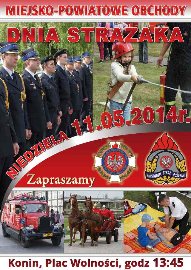 Miejsko – Powiatowe Obchody Dnia Strażaka odbędą się w najbliższą niedzielę na Placu Wolności w Koninie.Rozpoczną się przemarszem z placu Jednostki Ratowniczo – Gaśniczej nr 2 do Kościoła św. Bartłomieja o godz. 12.30.