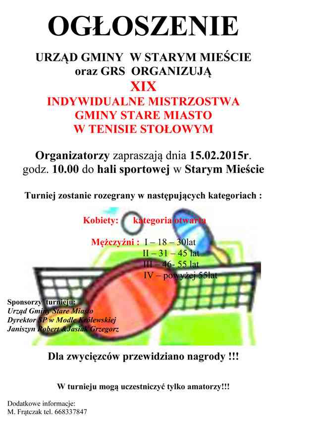 Miłośnicy tenisa stołowego spotkają się w Starym Mieście