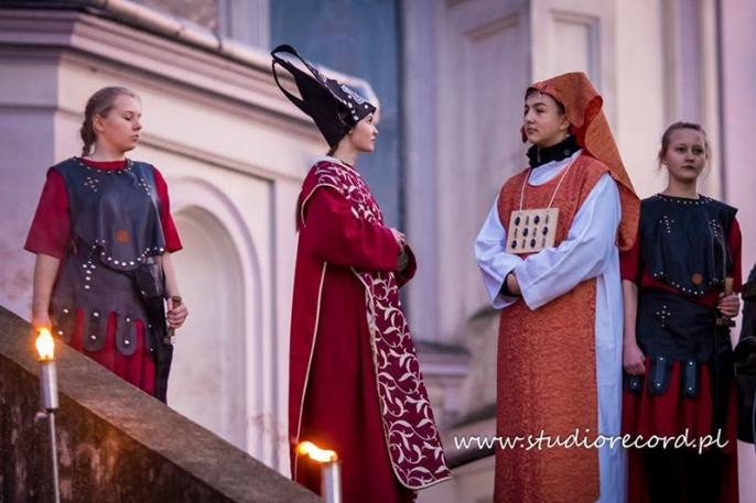W niedzielny wieczór, na parkingu przy świątyni, młodzież parafii wraz ze swoim duchowym przewodnikiem – ks. Przemysławem Pankowskim – wikariuszem kramskiej wspólnoty parafialnej, zaprezentowała niecodzienną inscenizację. Wydarzenie poprzedziła modlitwa Koronką do Miłosierdzia Bożego, której przewodniczył ks. prał. Sławomir Kasprzak, proboszcz parafii.