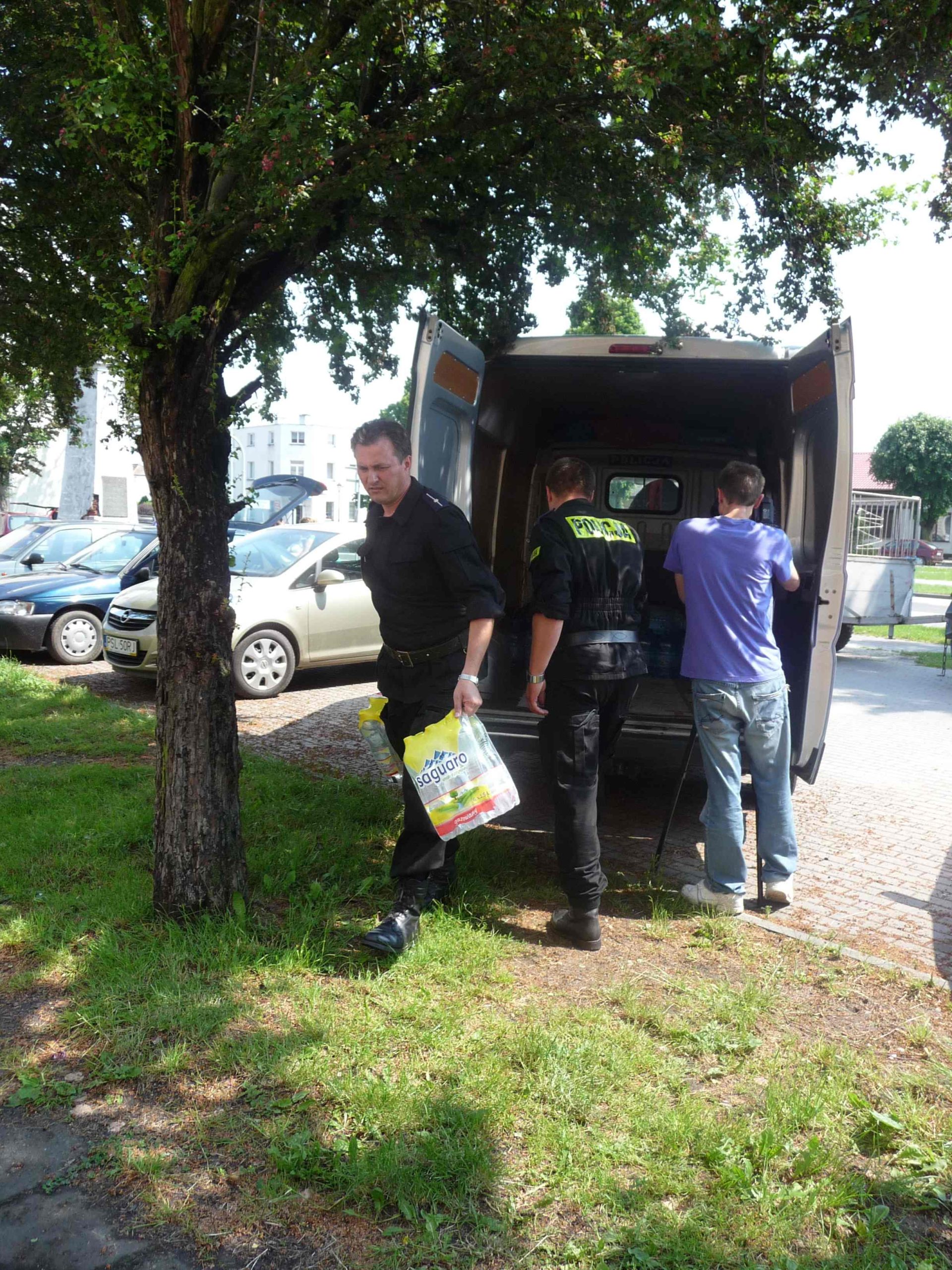 Busem wypełnionym darami dla powodzian przyjechali do Goliny policjanci z Komendy Miejskiej Policji w Koninie. Funkcjonariusze, zainspirowani  przez komendanta, przekazali zapasy wody, żywności o długim terminie ważności oraz środków chemicznych.