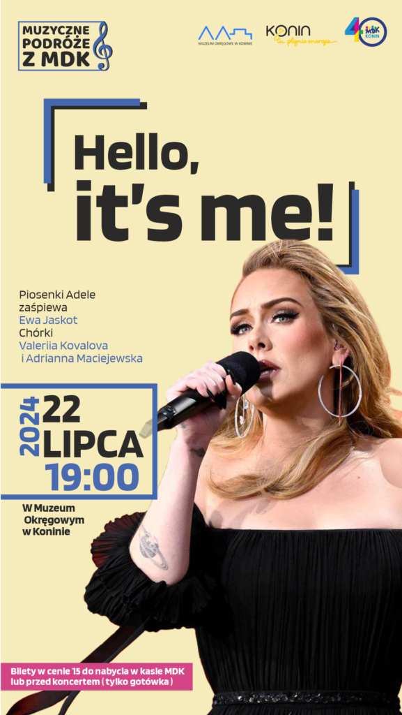 Młodzieżowy Dom Kultury w Koninie oraz Muzeum Okręgowe serdecznie zapraszają na kolejne wydanie Muzycznych Podróży z MDK i koncert "Hello, it's me!".