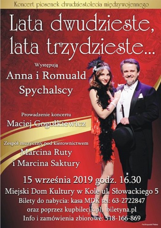 Bilety na „Lata dwudzieste, lata trzydziste” są jeszcze w sprzedaży: kasa MDK ul. Słowackiego 5 tel. 63-2722847 oraz na kupbilecik.pl, biletyna.pl, ticketmaster.pl, Info i zamówienia zbiorowe: 518 166 869.
